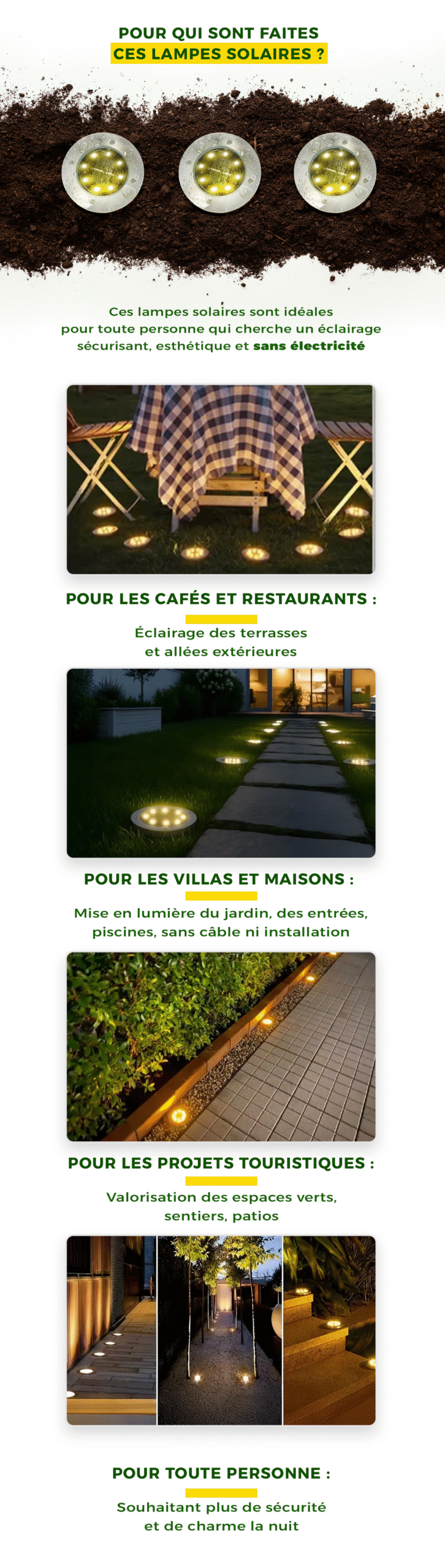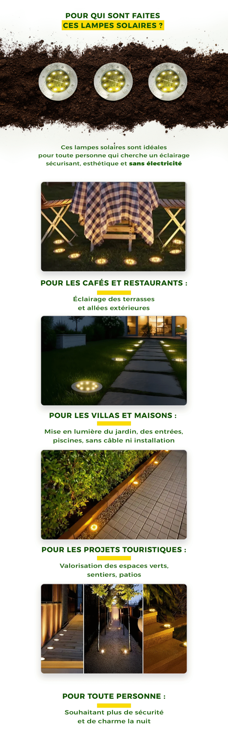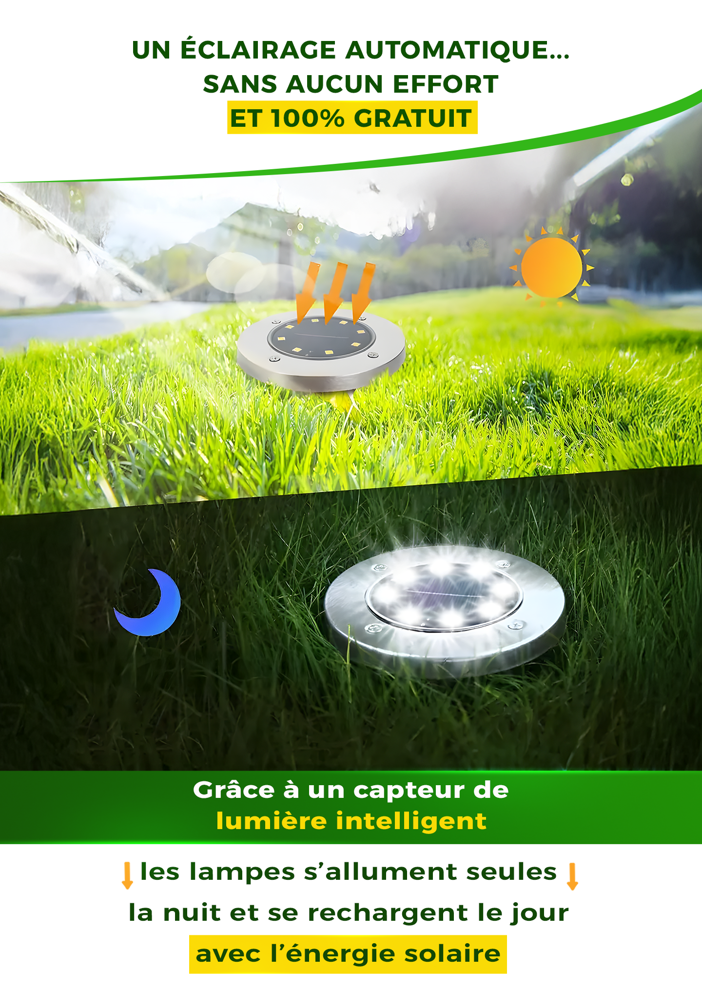 Jusqu’à 8 à 10 heures d’éclairage continu après une charge complète pendant la journée.