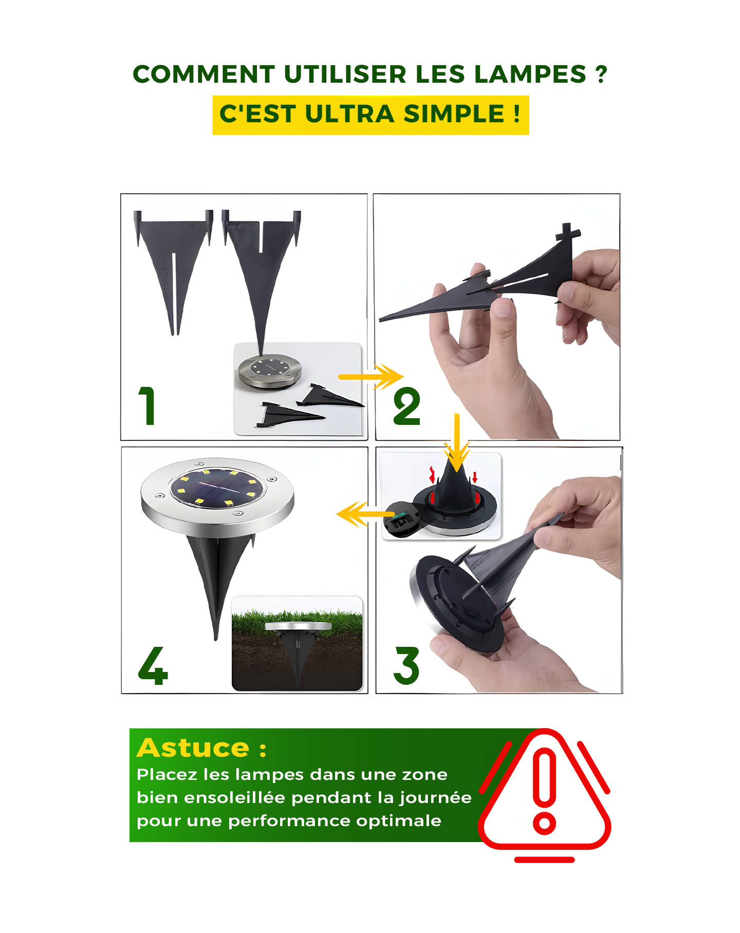 Pas du tout. Il suffit de planter la lampe dans la terre ou la poser sur une surface plane. Aucun câble ni outil nécessaire